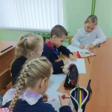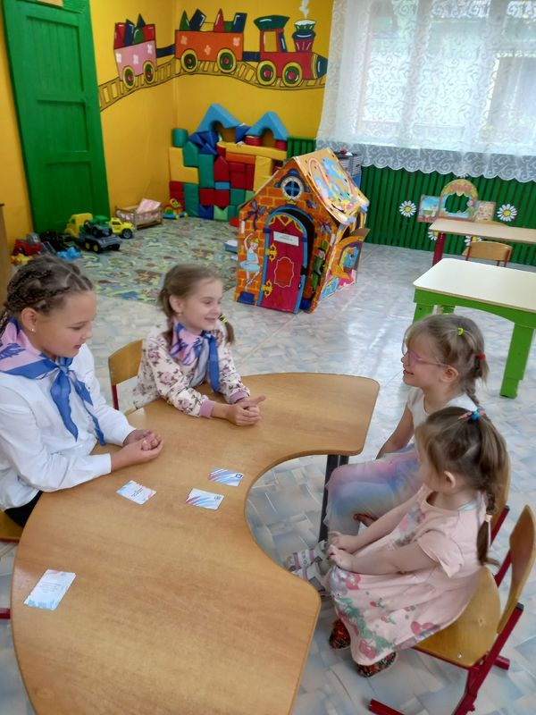 Орлята 4 класса провели КТД "Своим примером". Девочки посетили детский сад №4 поселка Сокольники, провели настольные и подвижные игры для воспитанников детского сада. Вручили Варе и Лизе орлятский флажок и блокнот.