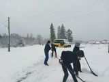 Выпал снег❄️❄️❄️ Наши ребята взялись за лопаты и расчистили пришкольную территорию👍